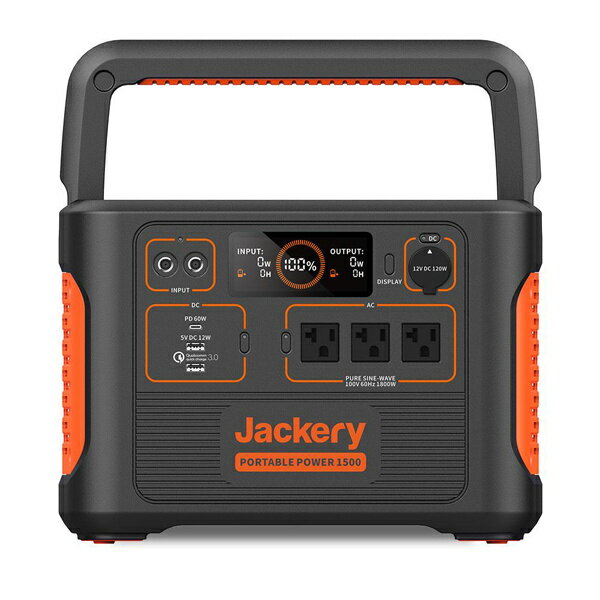 ポータブル電源 1500 Jackery史上最大級426300mAh/1534Whの超大容量バッテリー搭載。定格出力1800W、瞬間最大出力3600W。■波形:純正弦波■出力:AC×3、USB-A×2、USB-C×1、シガーソケット×1■付属品:車載用充電シガーソケット、SolarSagaアダプター×2、ACアダプター、取扱説明書■保証期間:3年 詳細スペック 電気用品安全法(本体)非対象 電気用