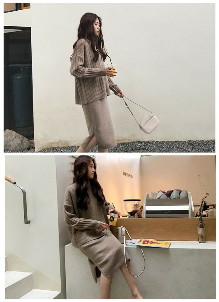 ニットワンピース レディース ロング丈 ニット ワンピース セーター きれいめ 大人っぽい マキシワンピ マキシ丈 春秋冬 長袖 モカ ブラック ブルー cj0114