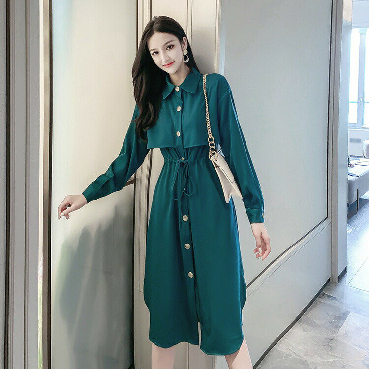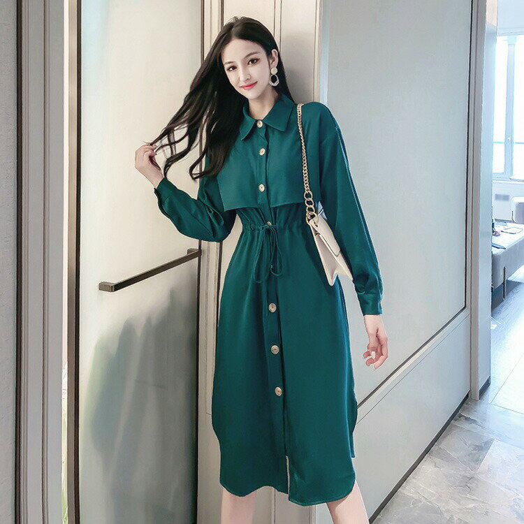 【送料無料】シャツワンピース 襟付き フロントボタン ロングワンピース 春ワンピ 春カラー ウエストリボン 長袖 ロング丈 ミモレ丈 きれいめ デイリーおしゃれ 大人ガーリー Sサイズ Mサイズ Lサイズ 大人可愛い JSファッション【210330】【3月新作】